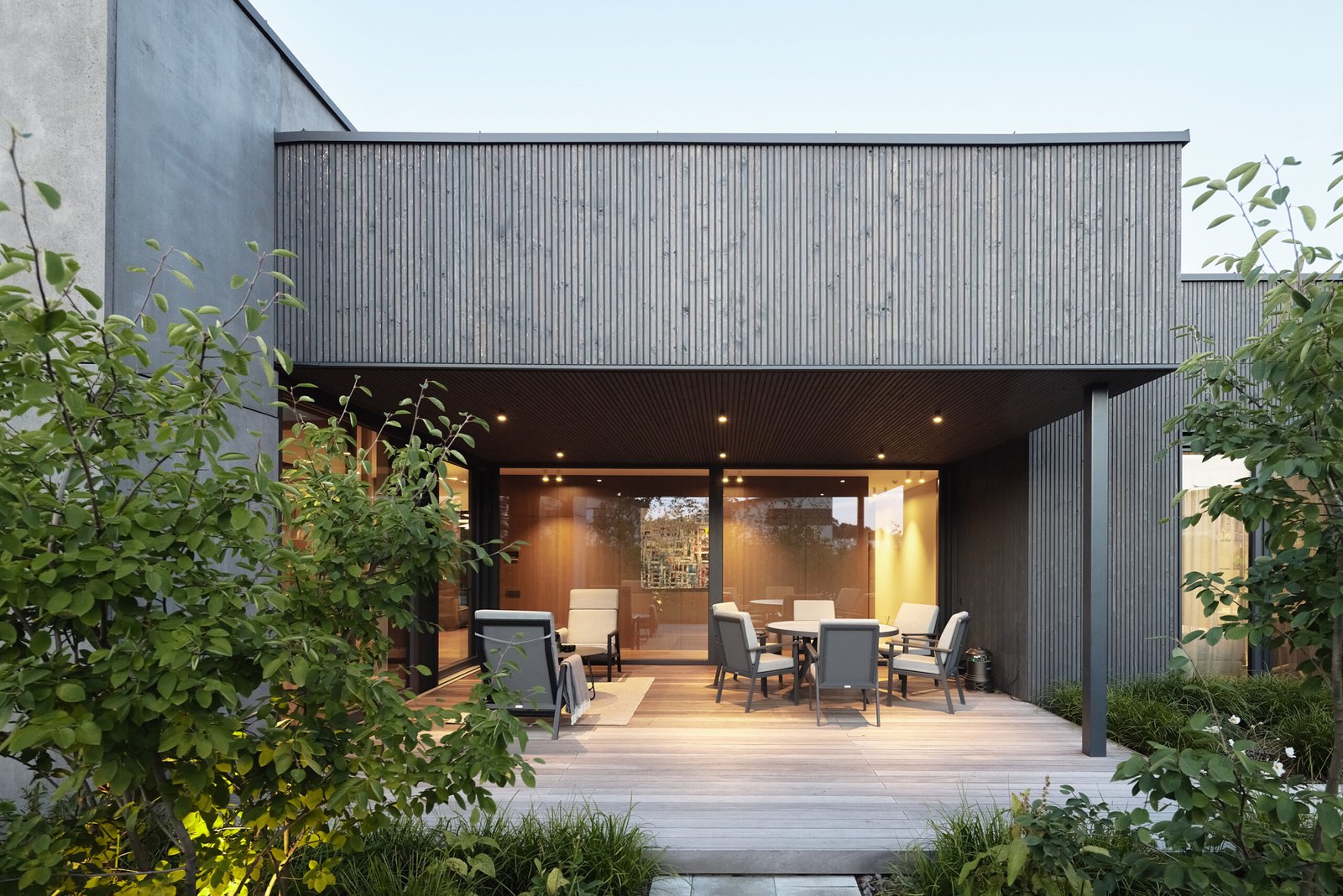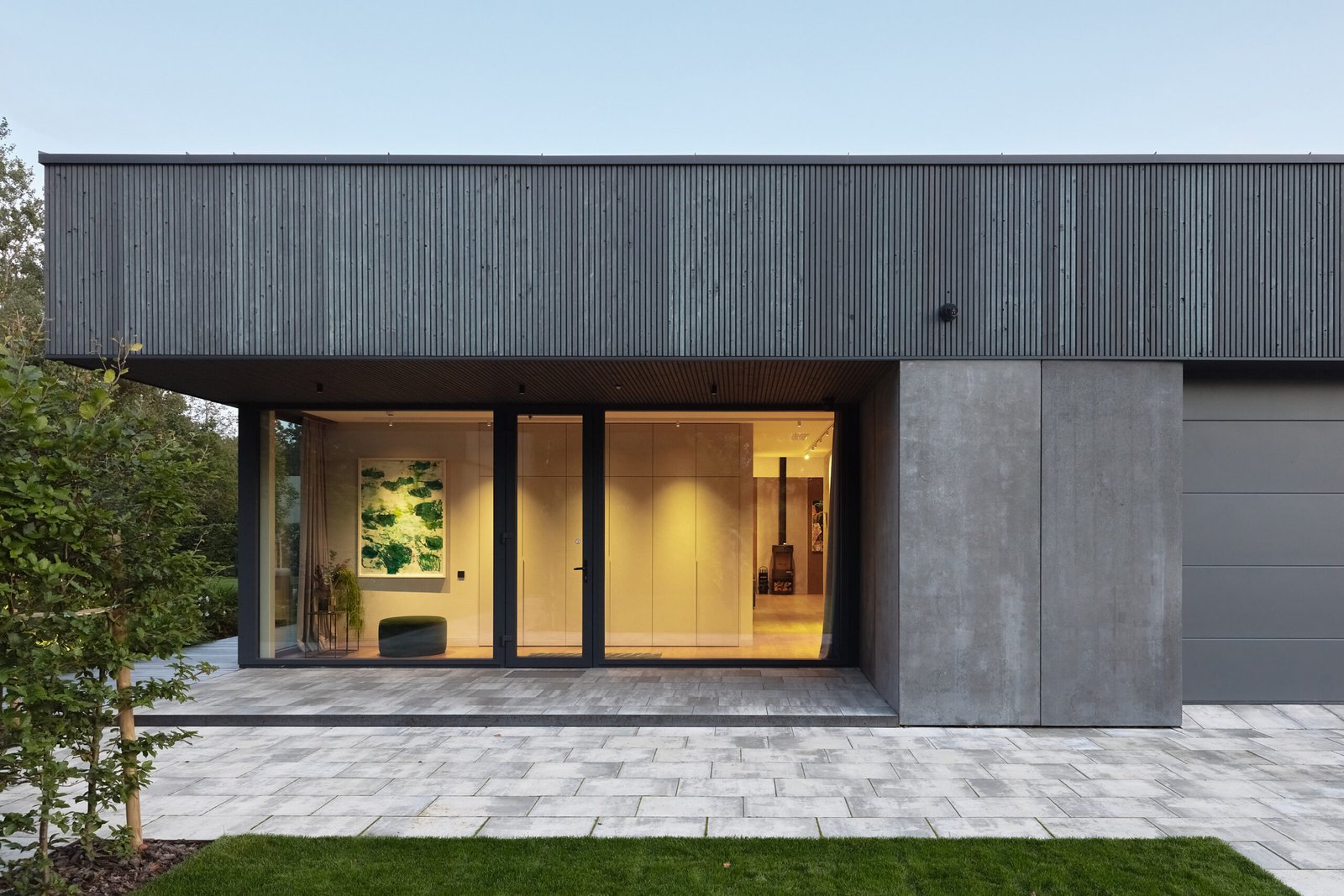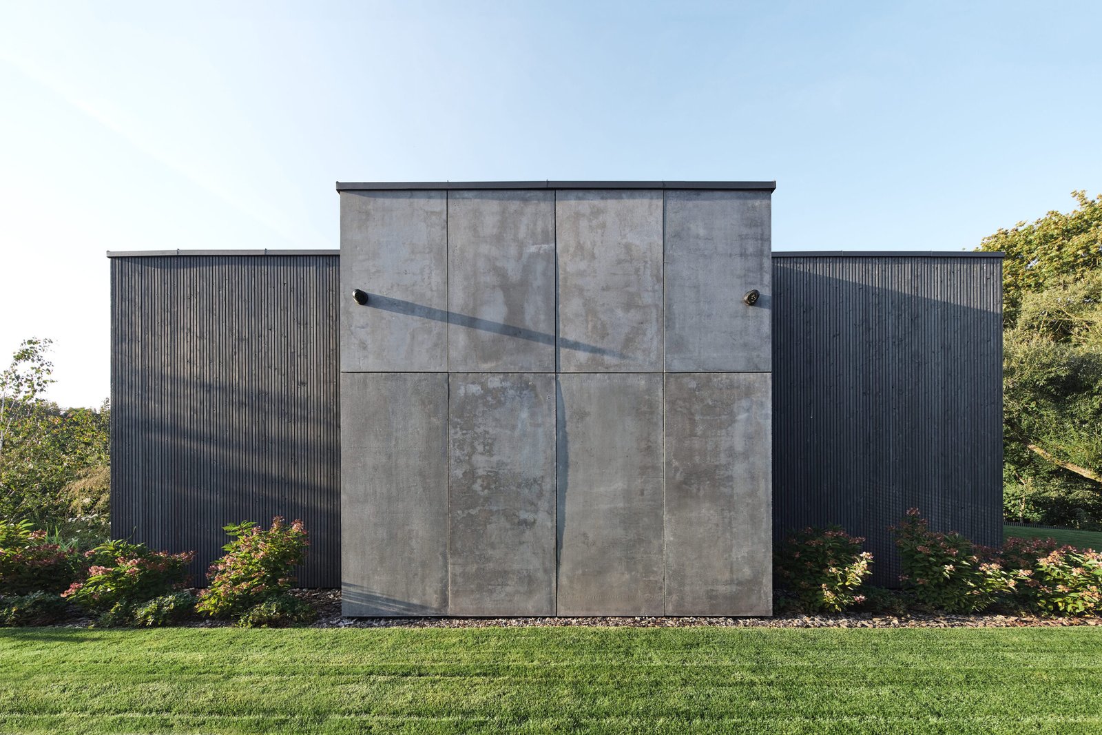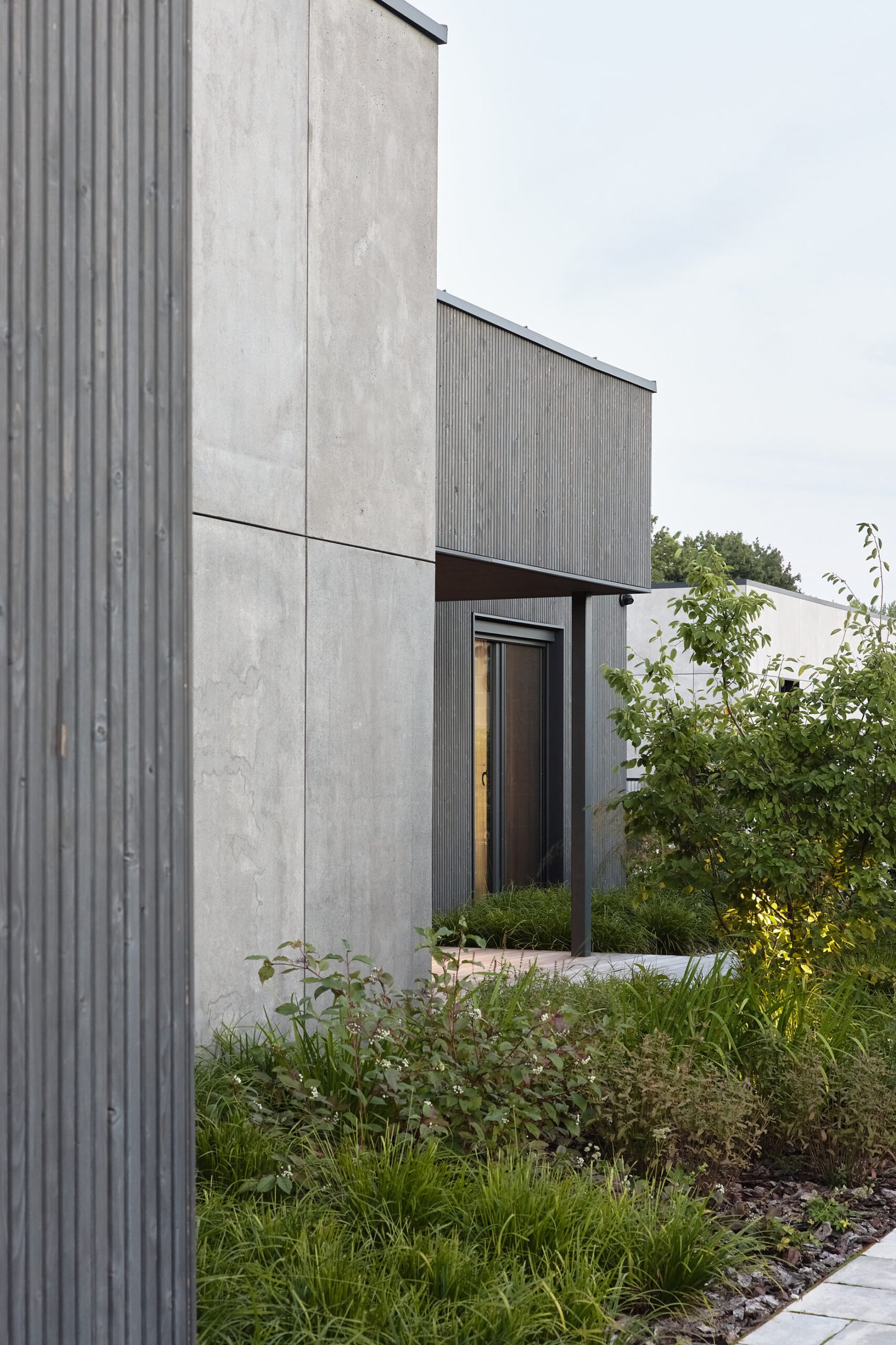 The architectural expression relies on a carefully selected material palette. The façade combines thermally modified wood with 8 cm concrete slabs featuring subtle color shading. This combination adds warmth, depth, and a timeless modern identity. For more information on sustainable façade materials, you can explore resources from The International Passive House Association (outbound link placeholder).