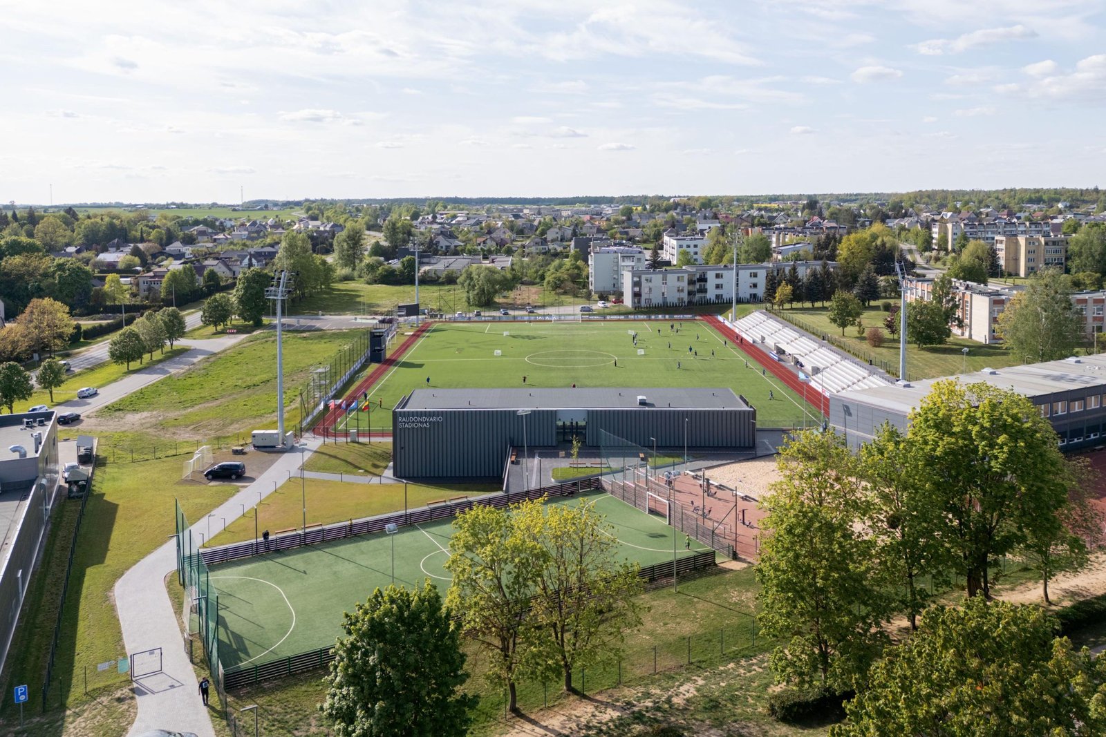 Raudondvaris is transforming its old school stadium into a modern community sports center. Located at Atgimimo Street 1, the new football stadium will replace the outdated field in the southern part of the school plot. The project is structured in two phases to allow for efficient and gradual development.
