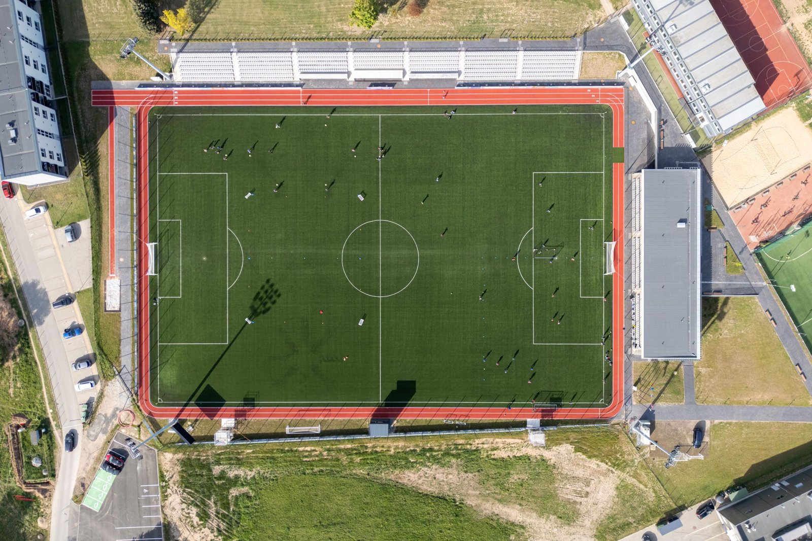 In the first stage, the team will install a full-size football field with artificial turf and surround it with a synthetic running track. Two spectator stands will frame the northern side of the pitch. The open grandstands will offer around 1,000 seats, including designated spaces for people with reduced mobility. In addition, four lighting towers will ensure safe and functional use during evening games.